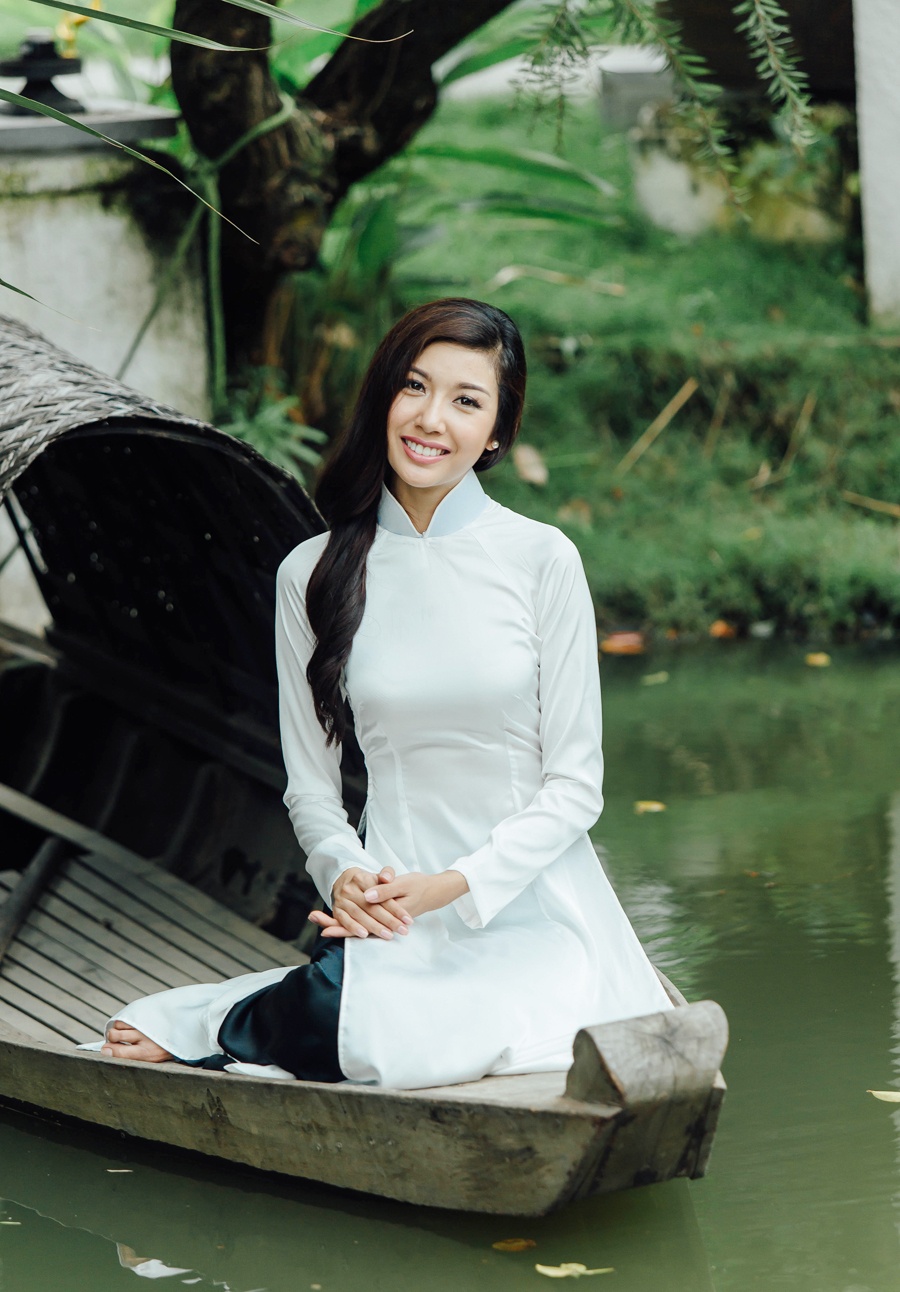 | Thúy Vân chọn áo dài truyền thống để thực hiện ảnh minh họa trong MV. Ảnh: Nhân Phạm |