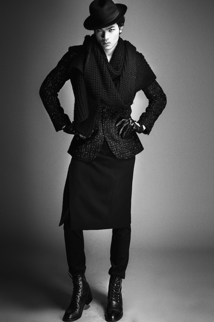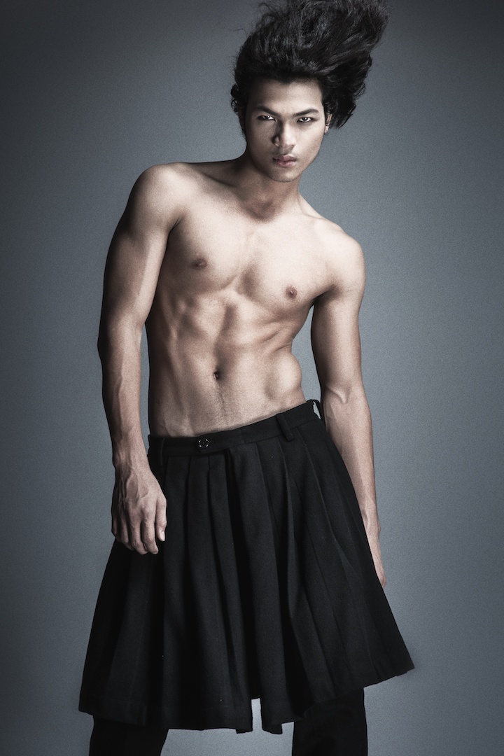 | Với cách xử lý chất liệu hiện đại, cùng đường cắt dứt khoát, BST toát lên vẻ đẹp nam tính. Bên cạnh đó, NTK vẫn giữ lại phong cách thiết kế sở trường là sử dụng chất liệu ren lưới và mẫu quần giả váy dành cho nam để tạo ấn tượng. |