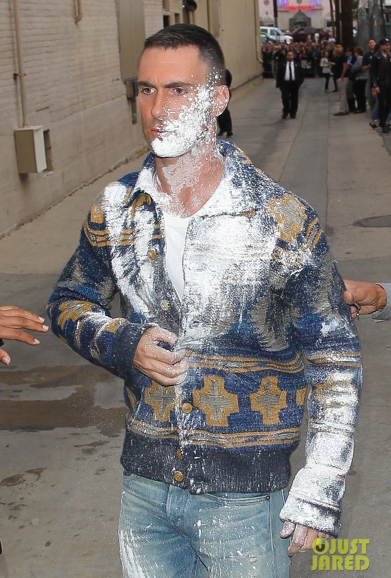 | Đáp lại sự chân thành của fan, Adam Levine đã dành thời gian ký tặng người hâm mộ. Tuy nhiên, trong lúc mải mê ký, Adam Levine bất ngờ bị một người đàn ông hất trọn gói bột vào mặt. |