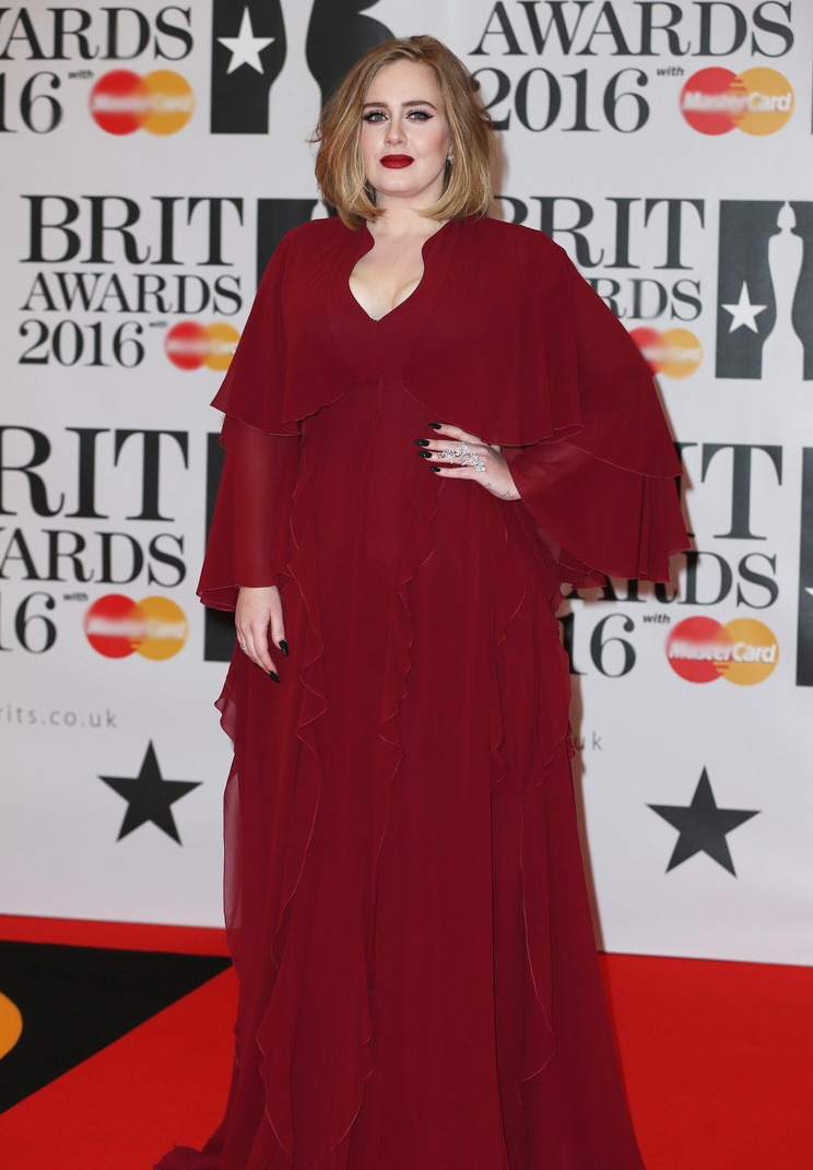 | Họa mi nước Anh Adele chọn bộ đầm màu đỏ đậm cùng lối trang điểm yêu kiều đầy cuốn hút trên thảm đỏ lễ trao giải âm nhạc nước Anh, BRIT Awards 2016. |
