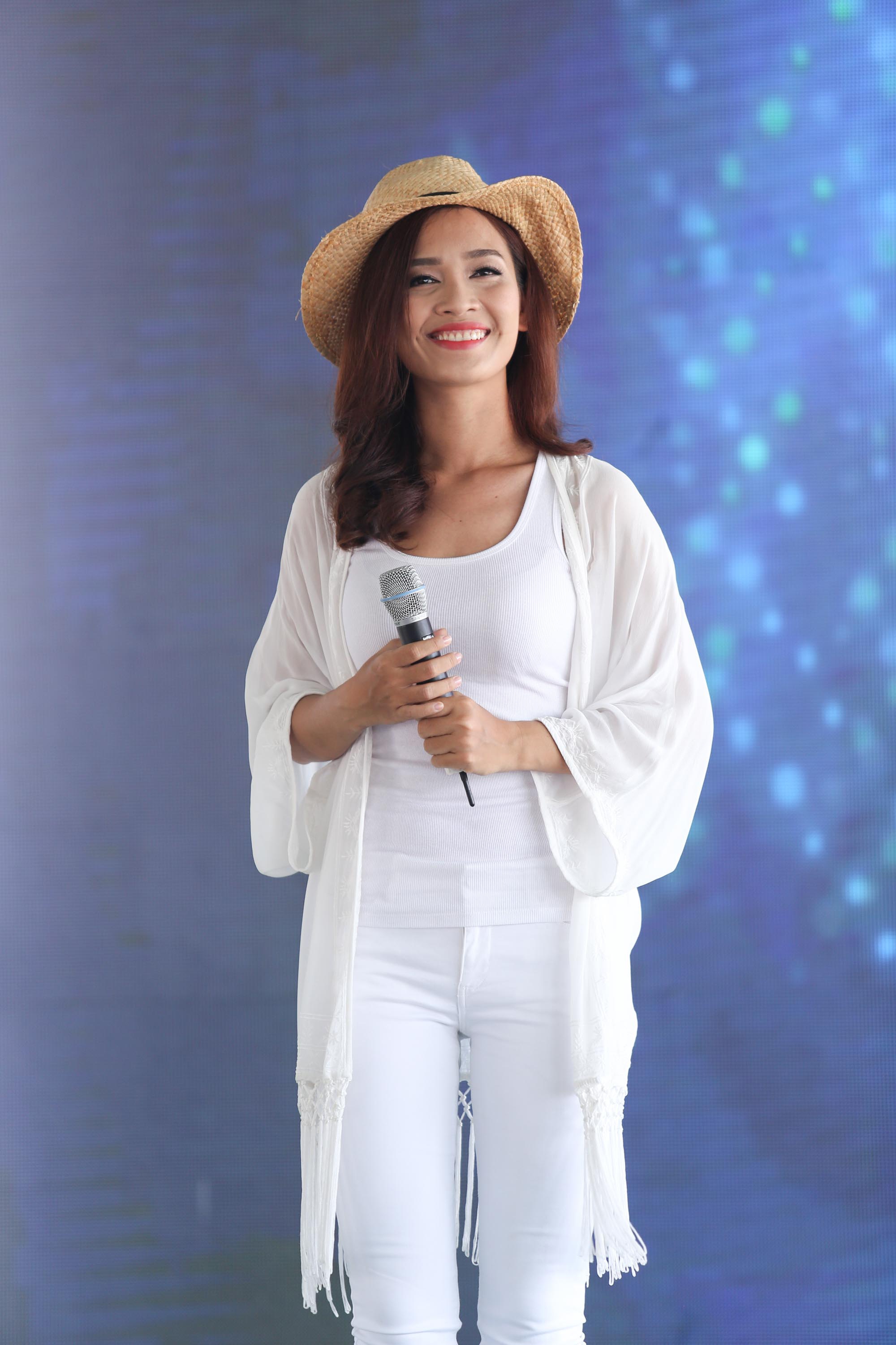 | Tiết trời nóng bức và nắng to nên nữ ca sĩ đội mũ và diện trang phục kín mít để bớt nắng chiếu trực tiếp vào da. Sự nhiệt tình khi lặn lội đường xa từ TP HCM về Đồng Nai tham gia chương trình giúp Ái Phương nhận được nhiều sự yêu mến của các công nhân. |