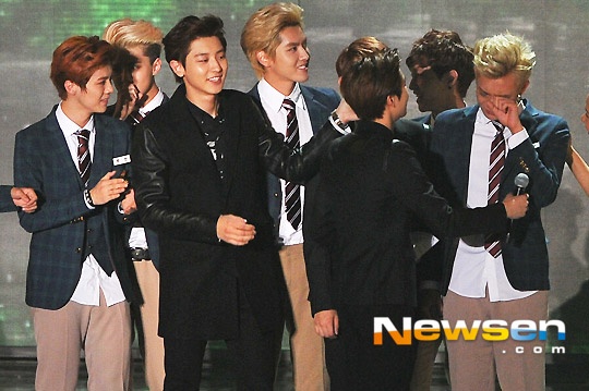 | Các chàng trai EXO rơi nước mắt khi giành giải Ca khúc của năm.