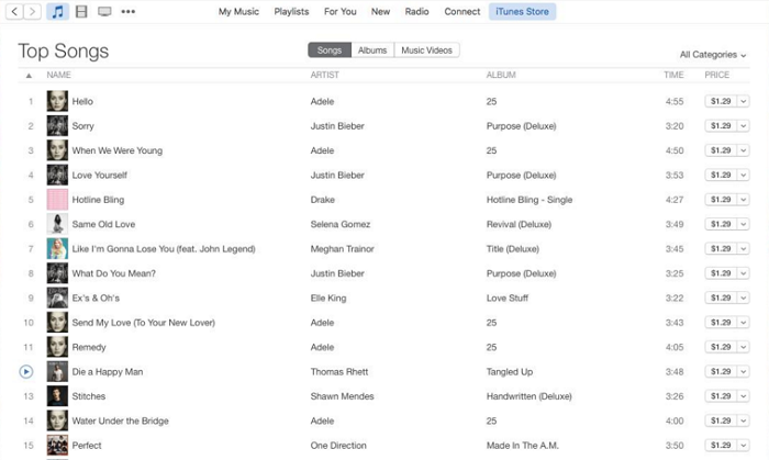 | Nhiều ca khúc trong album 25 của Adele lọt vào top 20 của iTunes. |