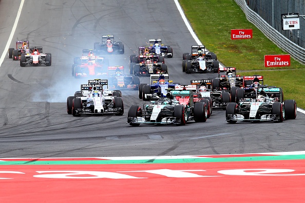 | Bên cạnh tai nạn ngay vòng đầu của Alonso và Raikkonen, chặng Austrian GP cũng chứng kiến đôi chút bất ngờ. Dù chỉ xuất phát ở vị trí thứ 2, nhờ cú depart tốt, Nico Rosberg xuất sắc vượt mặt đồng đội Lewis Hamilton ở góc cua đầu tiên. |