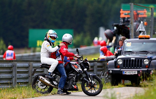 | Tay đua tân binh của McLaren di chuyển về khu vực kỹ thuật bằng moto cứu hộ. |