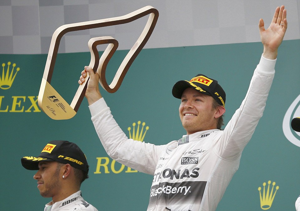 | Rosberg là tay đua cán đích đầu tiên với thời gian 1 giờ 30 phút 16 giây 930. Về lần lượt phía sau là Hamilton và Felipe Massa (Williams). |