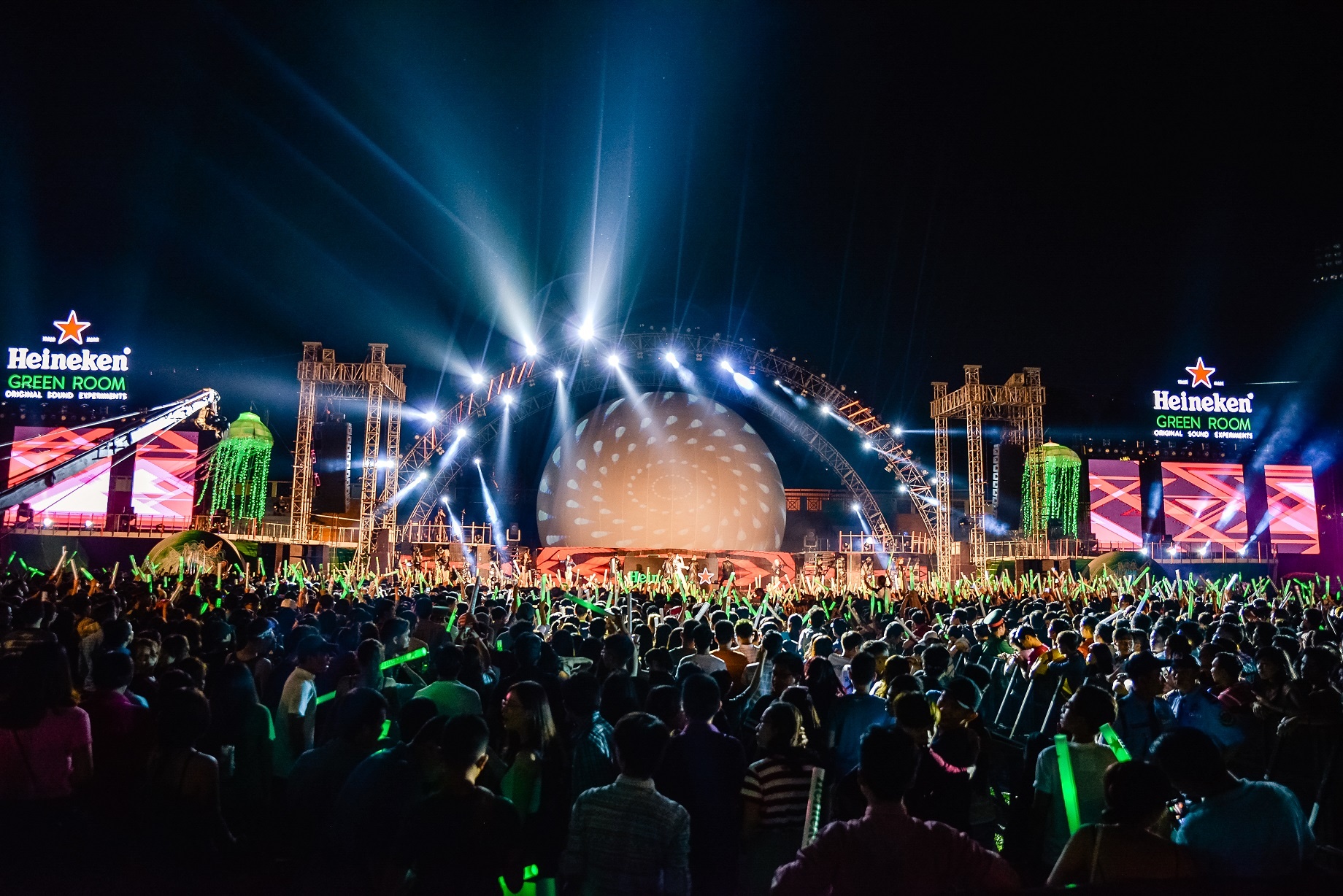 Sân khấu hoành tráng của sự kiện Heineken green room tại TP HCM. |