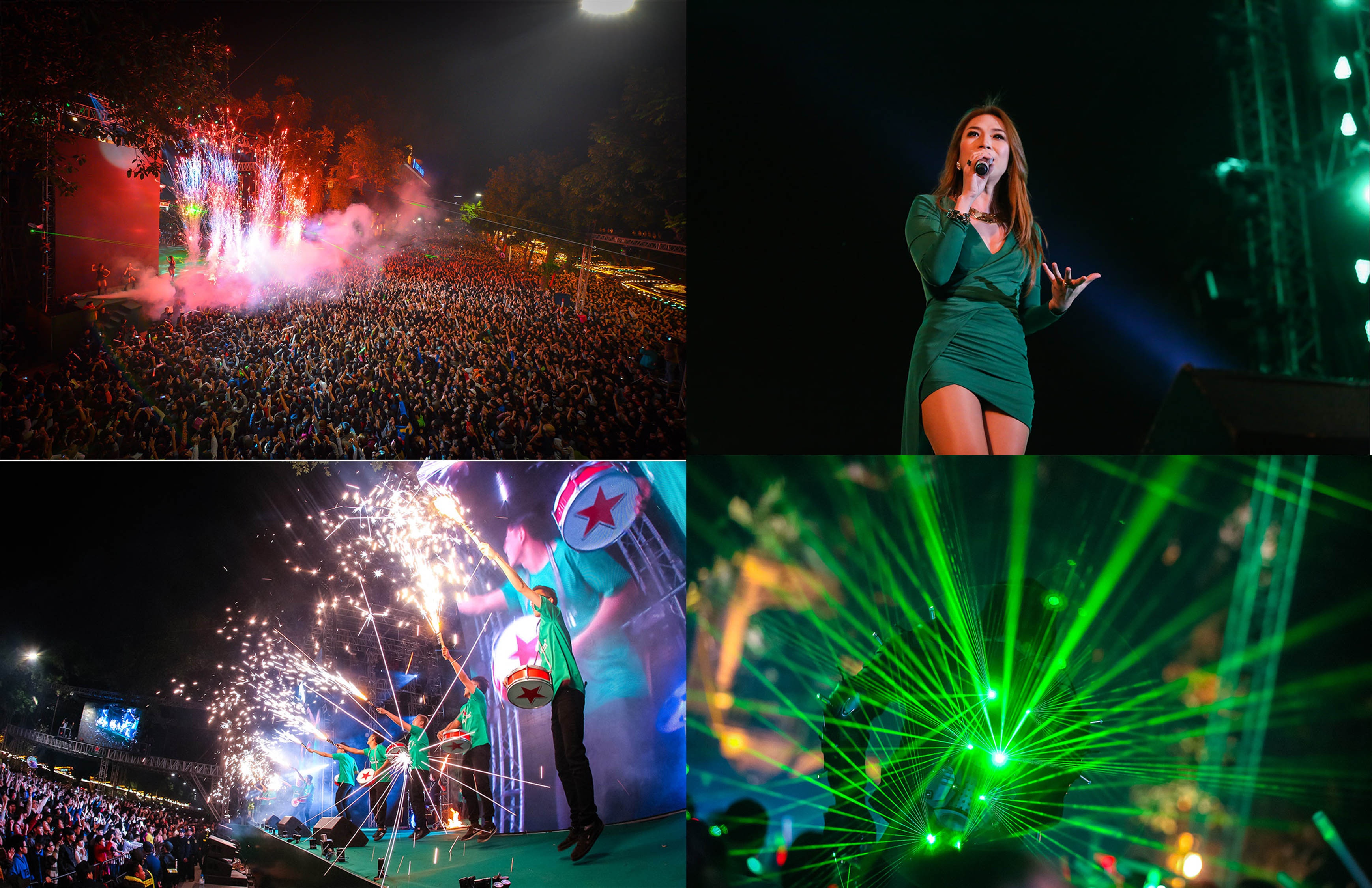 Trước đó, Heineken Countdown Party tại Hà Nội cũng thu hút khán giả bởi những màn biểu diễn đỉnh cao. Sự kết hợp hoàn hảo của sáng laser, hệ thống cáp bay khủng, bàn nâng với độ cao kỷ lục 8 m đã tạo nên một buổi biểu diễn ngoài trời hoành tráng, thỏa mãn thính giác, thị giác của hàng chục nghìn khán giả.