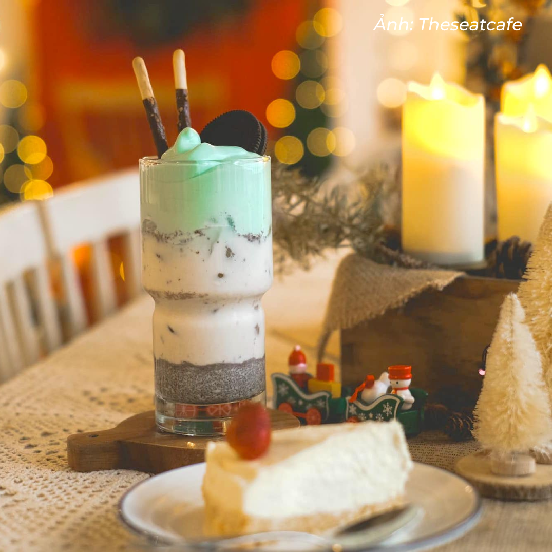 Có dịp ghé thăm quán sau hơn một năm, tôi thích thú vì không khí Giáng sinh đã ngập tràn nơi đây. Mỗi ngóc ngách đều được chủ quán chăm chút tỉ mỉ. Cây thông, hộp quà, ánh nến, những dải ngôi sao hay chữ trang trí được phối màu hài hòa với toàn không gian.