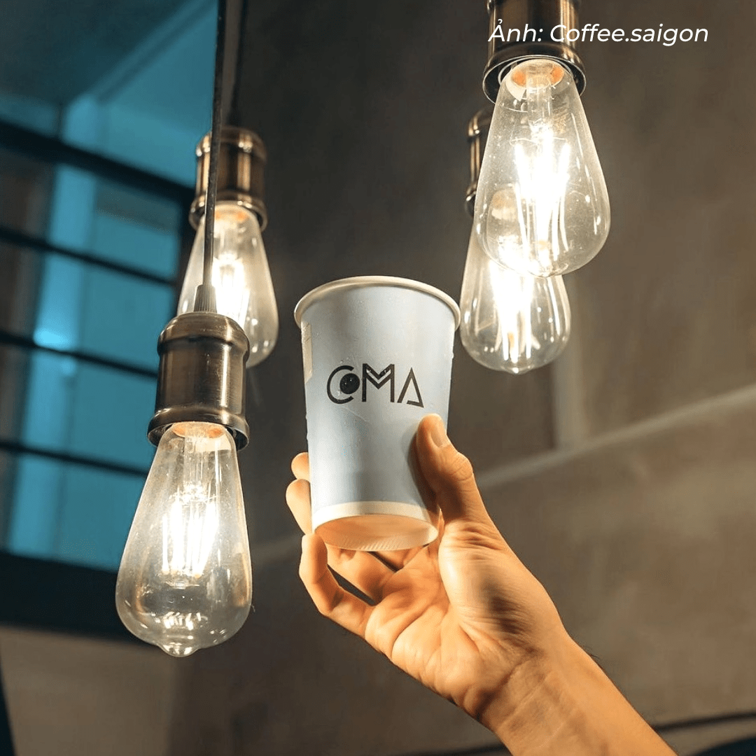 Tiệm cà phê nằm đối diện cửa Tây chợ Bến Thành. Không gian được thiết kế theo phong cách minimalism (tối giản) với gam màu xanh xám.