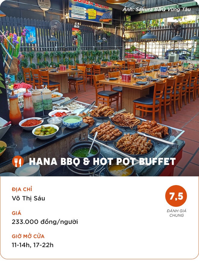 Nhà hàng đồ nướng và lẩu có sự kết hợp giữa phong cách Nhật Bản, Hàn Quốc và một chút phương Tây, phục vụ buffet tại bàn. Thực đơn phong phú hơn 50 món, từ hải sản, đồ nướng, lẩu đến salad, mỳ Ý, pizza. Khuôn viên sân vườn thoáng mát giúp thực khách có trải nghiệm tốt hơn.