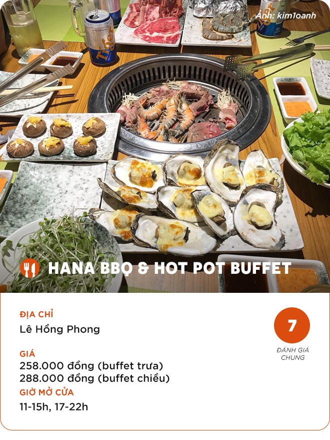 Diệu Nguyễn: "Nhà hàng thoáng mát, rộng rãi. Mình rất thích quầy line tráng miệng. Buffet tối có ít sự lựa chọn. Tại đây bạn được tự tay pha nước chấm tùy thích".