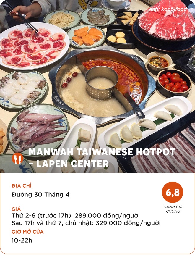 Manwah không chỉ gây ấn tượng bởi không gian sang trọng tông gỗ mà còn hương vị lẩu xứ Đài đặc sắc. Thực đơn phong phú gồm thịt bò Mỹ, cừu, heo Iberico, các loại hải sản như cá hồi, tôm sú, mực... cùng đồ viên, chân gà rút xương, há cảo, trứng gà... ăn kèm.