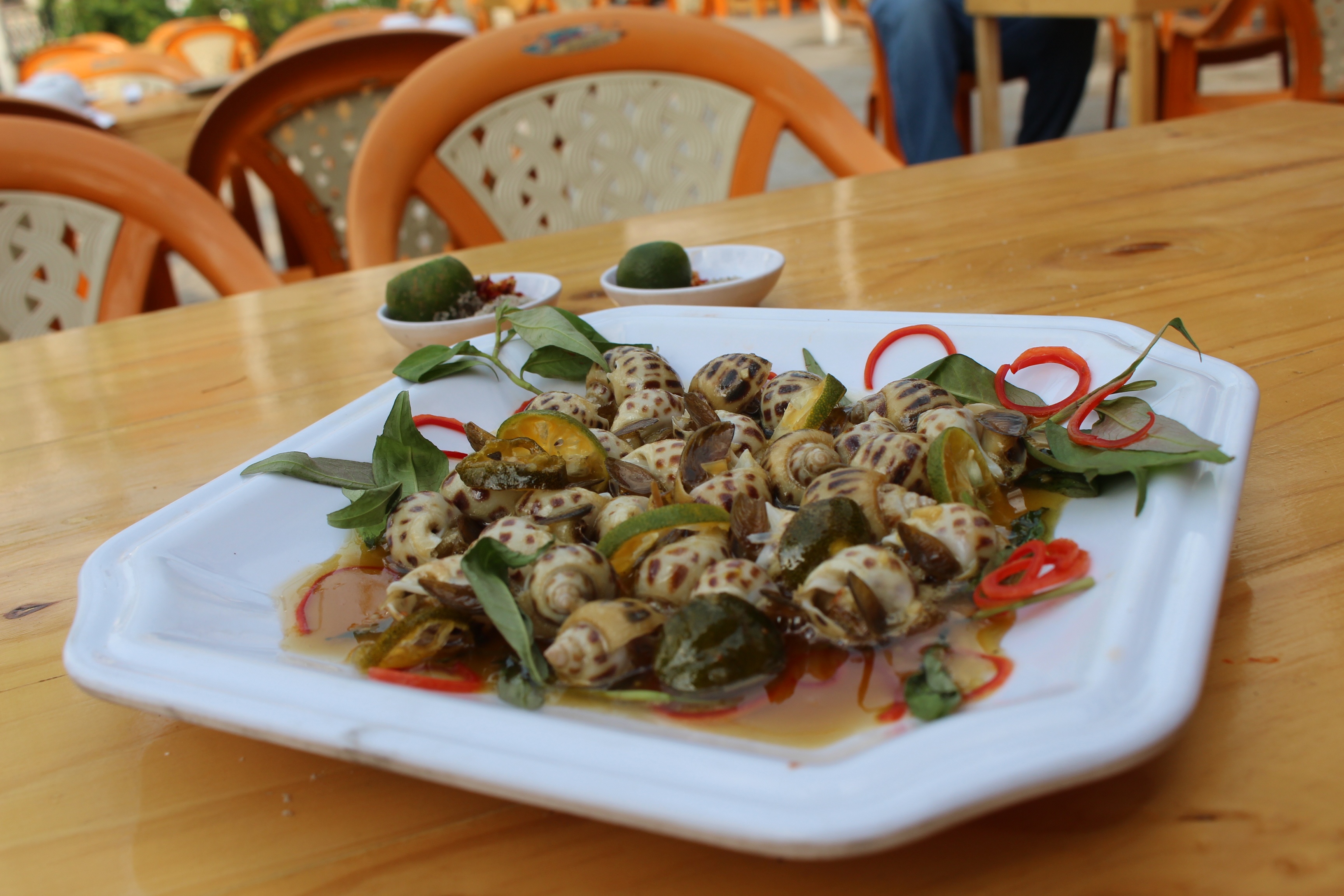 5. Ốc luôn là món hot với giới trẻ và dân văn phòng dù nắng hay mưa. Tuy nhiên khi trời se lạnh hay trong tiếng tích tách của hạt mưa rơi từ mái hiên xuống, vị chua cay của nghêu hấp Thái, càng cua rang muối, sò điệp nướng mỡ hành... càng tuyệt vời.