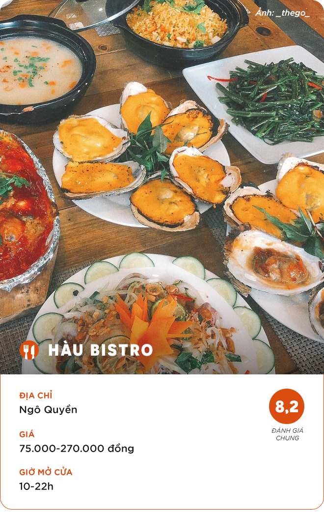 Với thực đơn hải sản đa dạng, quán được hội sành ăn yêu thích ở Đà Lạt. Ngoài menu chuyên món hàu, quán cũng phục vụ nhiều loại hải sản như sò, mực, bạch tuộc, tôm, ghẹ... Các món đa phần được nướng, nấu cháo, chiên cơm hoặc làm lẩu...
