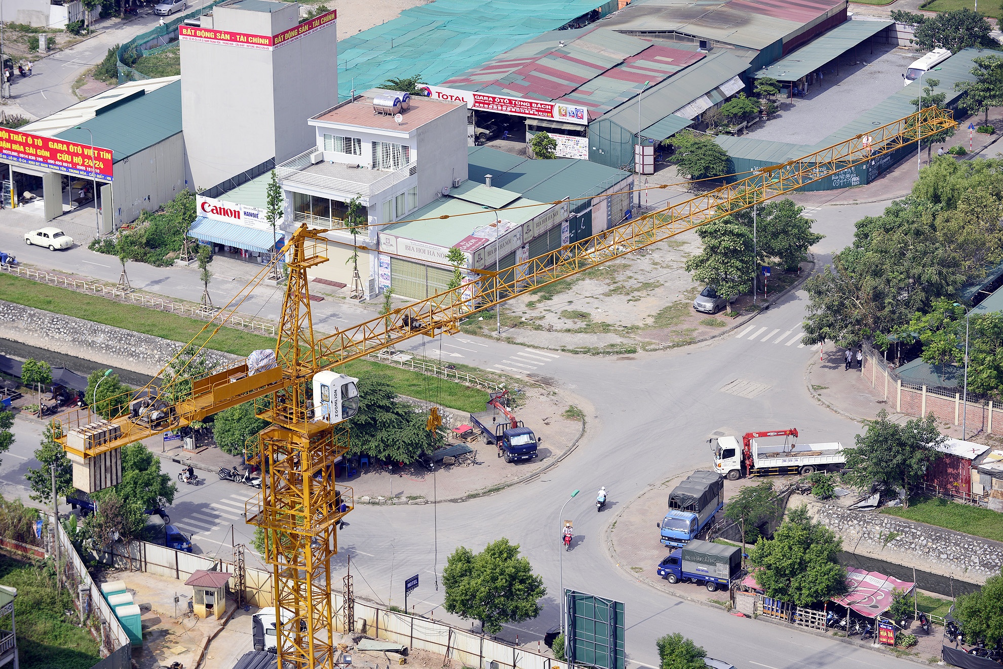 | Thậm chí có cả chiếc cần cẩu vươn ra đường trên cao vành đai 3 (đoạn đường Phạm Hùng). |