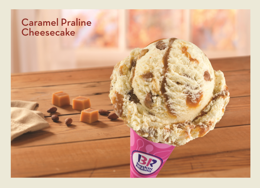 | Caramel Praline Cheesecake (được yêu thích bởi sự hòa quyện của kem phô mai vani với caramel và thơm bùi của hạt hồ đào) |