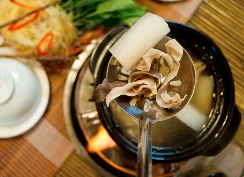 | Lẩu bao tử hầm tiêu trông rất đơn giản. |