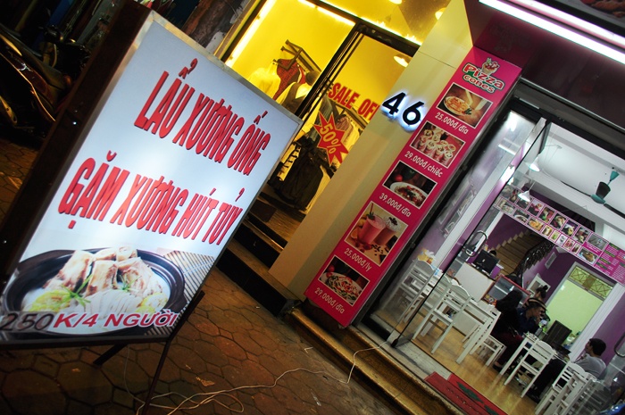 Điểm hấp dẫn nhất là set lẩu xương ống khá cạnh tranh về giá - 250.000 đồng/set, đủ cho khoảng 3 người. Quán lại có không gian tốt, lịch sự, sạch sẽ, nằm ở ngay đầu phố Quán Thánh, trung tâm sầm uất của Thủ đô, rất thích hợp để các bạn trẻ rủ nhau đi “tìm cảm giác lạ” ngày cuối tuần.