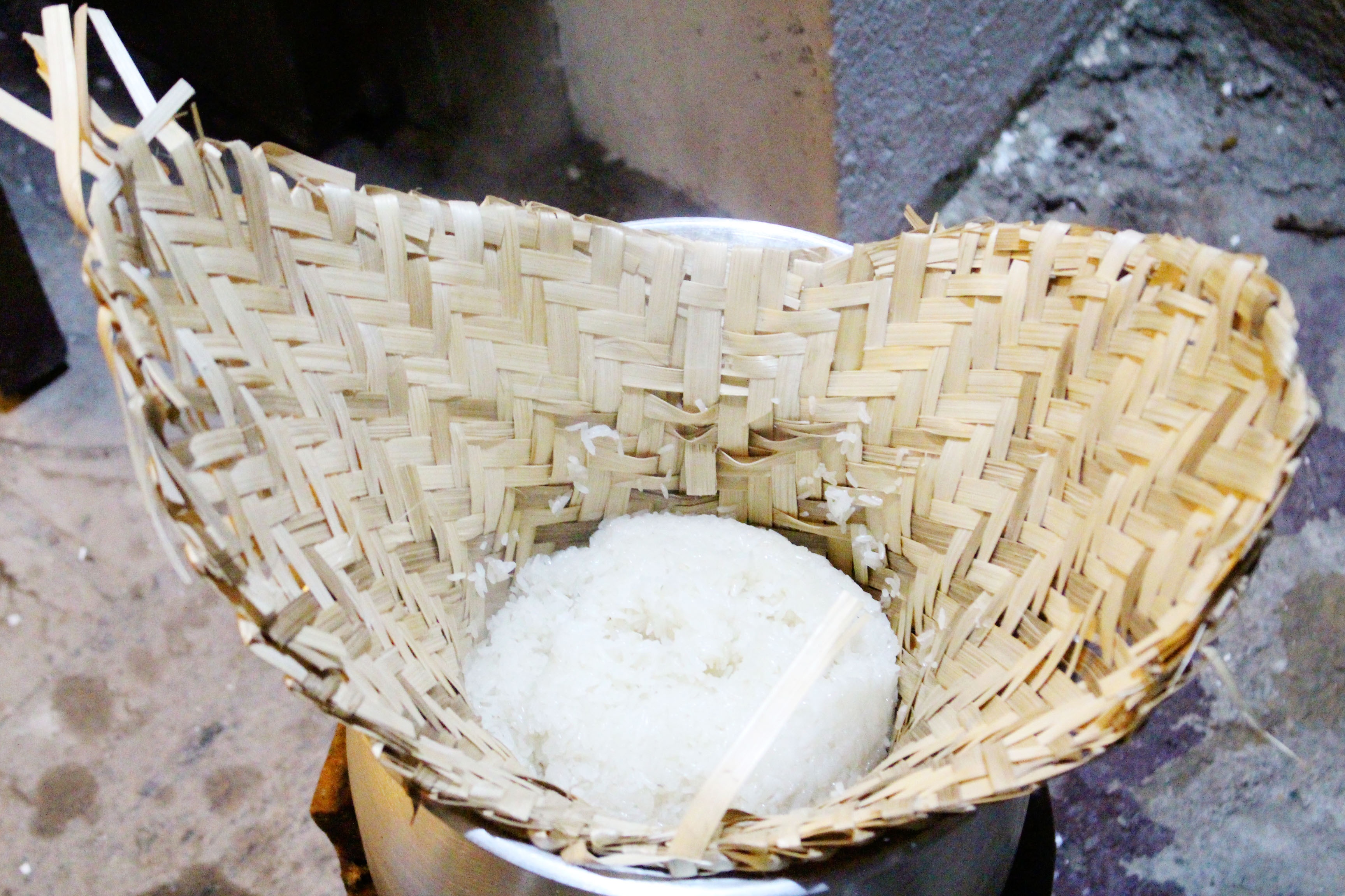 Nếu bụng chỉ hơi “hòm hòm”, một món khác có giá 5.000 đồng mà bạn nên thử tại đây là xôi. Mỗi phần xôi khoảng lưng chén cơm được đựng khéo léo trong giỏ tre. Được nấu từ nếp Lào, món xôi tại đây mang đến cho bạn những trải nghiệm khác hẳn các loại xôi trước đó.