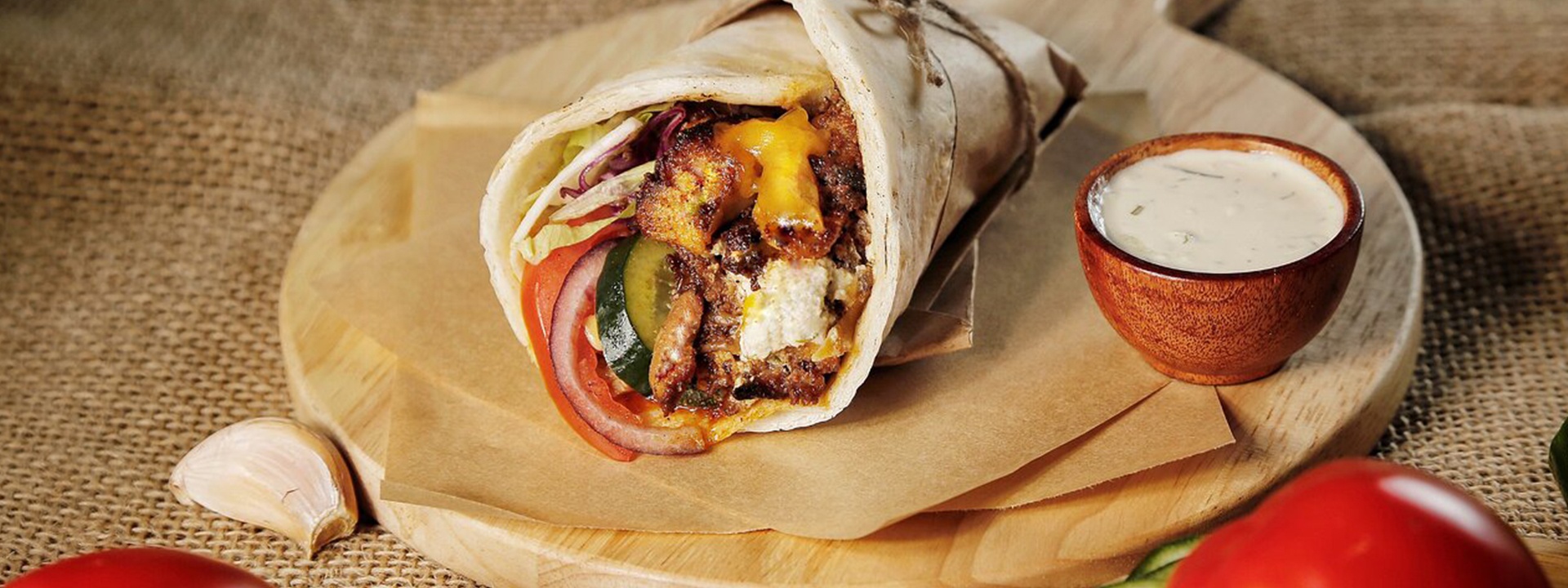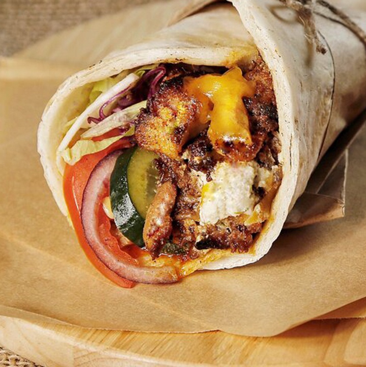 The Kebaby Roll có phần nhân thịt gà, phô mai, sốt cocktail mix tzatziki. Tôi lựa chọn tzatziki cho các món bánh bởi loại sốt truyền thống Địa Trung Hải này có vị đặc trưng từ sữa chua, làm giảm độ béo ngậy của thịt.