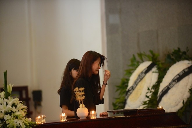 Hình ảnh cô khóc trong đám tang Toàn Shinoda khiến mọi người chạnh lòng.