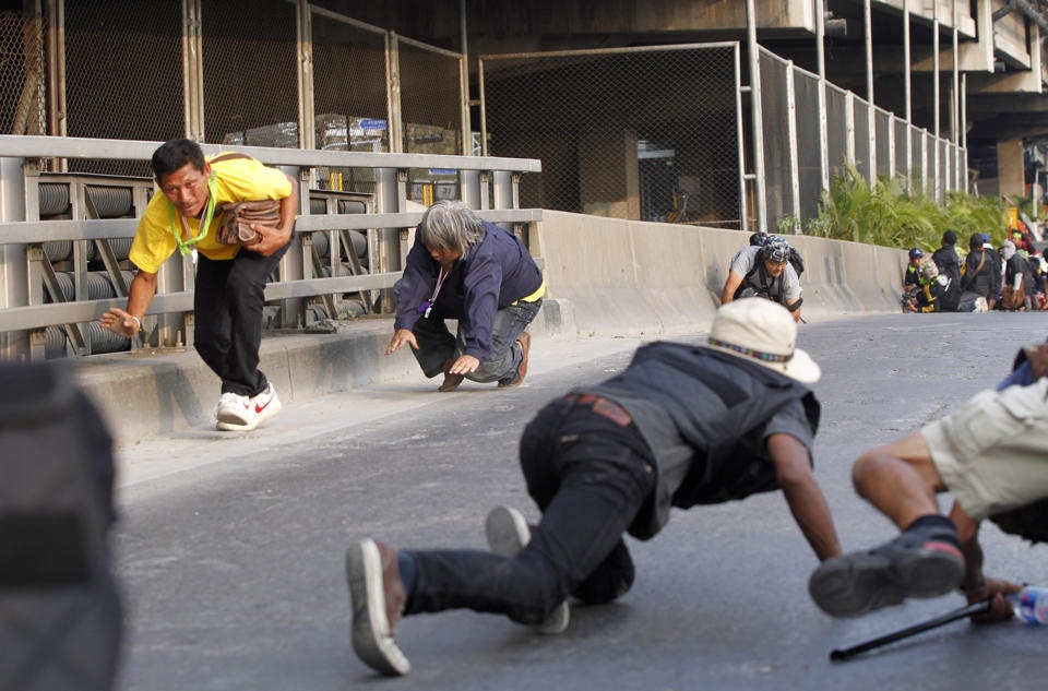 | Các cuộc đụng độ giữa người chống và ủng hộ chính phủ tại Bangkok khiến ít nhất 7 người bị thương. Ảnh: Reuters |