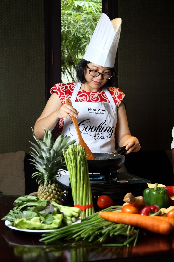 | Chị Nguyễn Thu Hương đang chế biến món ăn. |