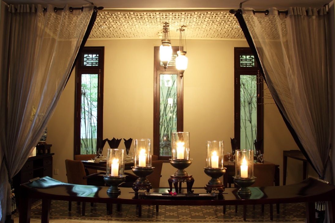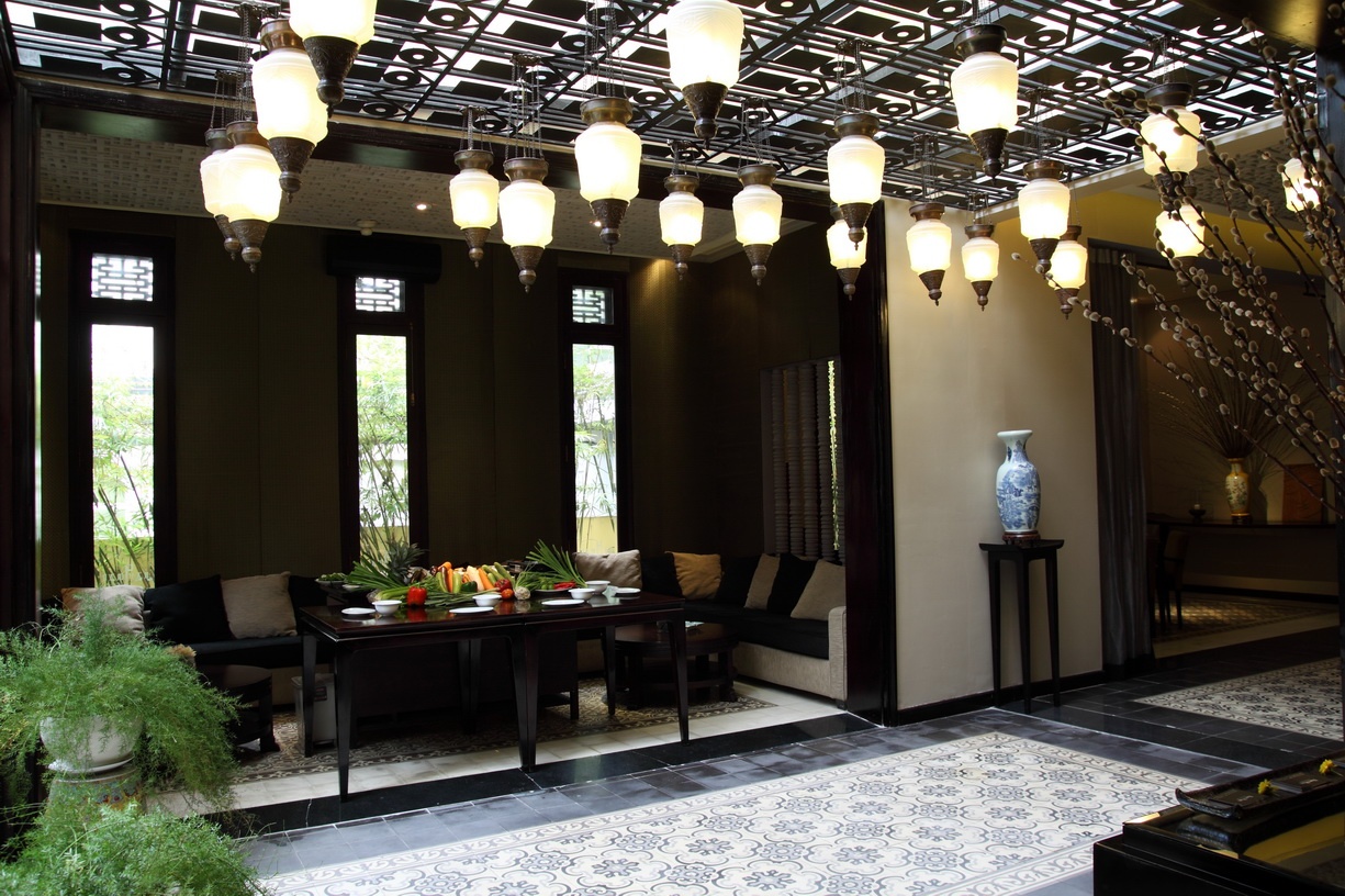 | Những bức trang thủy mặc, dải lụa mềm hay bộ đèn hoàng gia khiến không gian vừa sang trọng vừa trầm ấm. |