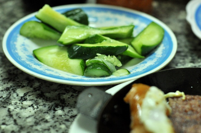 | Một suất bánh mì ở đây bao giờ cũng có kèm dưa góp. |
