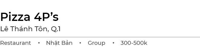 Với hương vị món ăn ngon, chất lượng đồng đều và thái độ phục vụ chuyên nghiệp, Pizza 4P's là một trong những nhà hàng yêu thích của tôi tại TP.HCM. Người sáng lập thương hiệu pizza nổi tiếng này là người Nhật, có lẽ vì vậy mà món ăn ở đây cộng hưởng giữa ẩm thực Italy và phong cách phục vụ xứ sở mặt trời mọc.