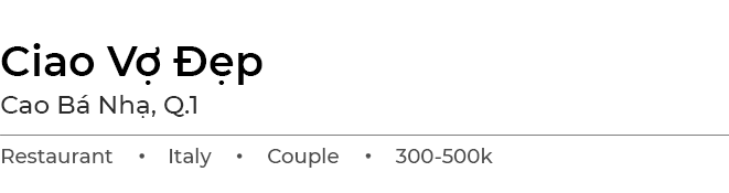Nếu không biết ăn gì trong buổi trưa, bạn có thể ghé thử món Italy tại Ciao Vợ Đẹp. Tuy nhận được nhiều phản hồi trái chiều về hương vị, đây vẫn là một trong những địa điểm phục vụ món Italy chất lượng, giá rẻ tại TP.HCM.