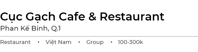 Không gian Cục Gạch nhẹ nhàng, phục vụ món Việt là gợi ý lý tưởng để bổ sung năng lượng cho giờ làm việc chiều.