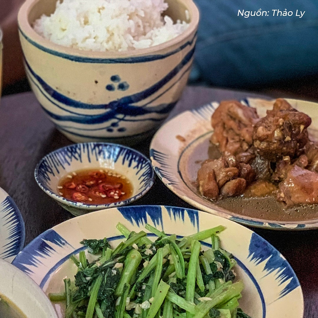 Không gian ngồi chia thành từng khu vực, bạn có thể chọn vị trí ở trệt, lầu hoặc ngoài sân khi trời bớt nóng. Quán không sử dụng thực đơn cố định nên thực khách không thể biết được món gì sẽ được dọn lên hôm đó, tôi nghĩ đây cũng là điểm thú vị. Món ăn tuy chưa phải ngon xuất sắc, trang trí không cầu kì nhưng bù lại nếm nếm khá vừa vị, một phần có đủ cơm, canh, món xào, món mặn.