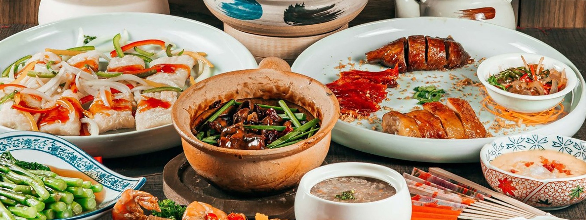 Món gợi ý: Há cảo sò điệp, chân gà hấp tàu xì, vịt quay, bắp bò kim tiền chua cay...
