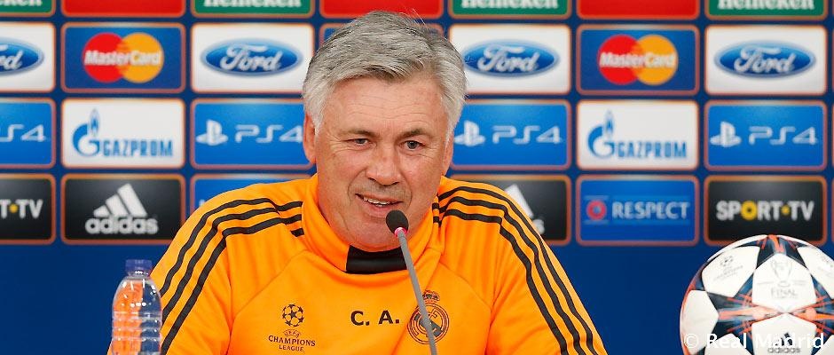 | Ancelotti trong buổi họp báo trước trận chung kết Champions League 2014. Ảnh: Getty Images |