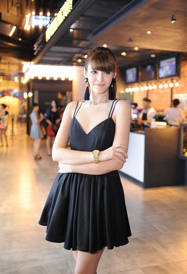 Andrea diện đầm đen nữ tính đậm chất mùa hè nổi bật tại buổi công chiếu tại Hà Nội.