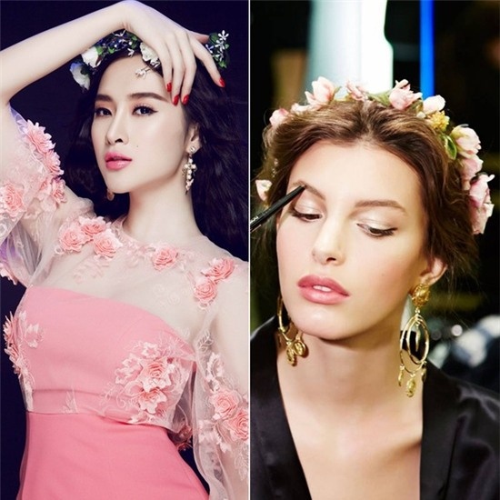 Còn nhớ năm trước, người đẹp 19 tuổi đã từng ghi dấu ấn với lối trang điểm nhẹ nhàng nữ tính và chiếc bờm hoa xuân rất giống Dolce&Gabbana.