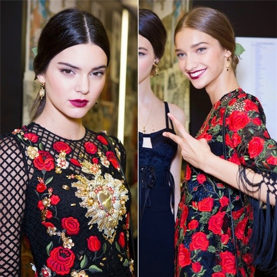 Từ trên sàn catwalk, những bông hoa hồng nhung đỏ của Dolce&Gabbana còn truyền cảm hứng làm đẹp cho Angela Phương Trinh.