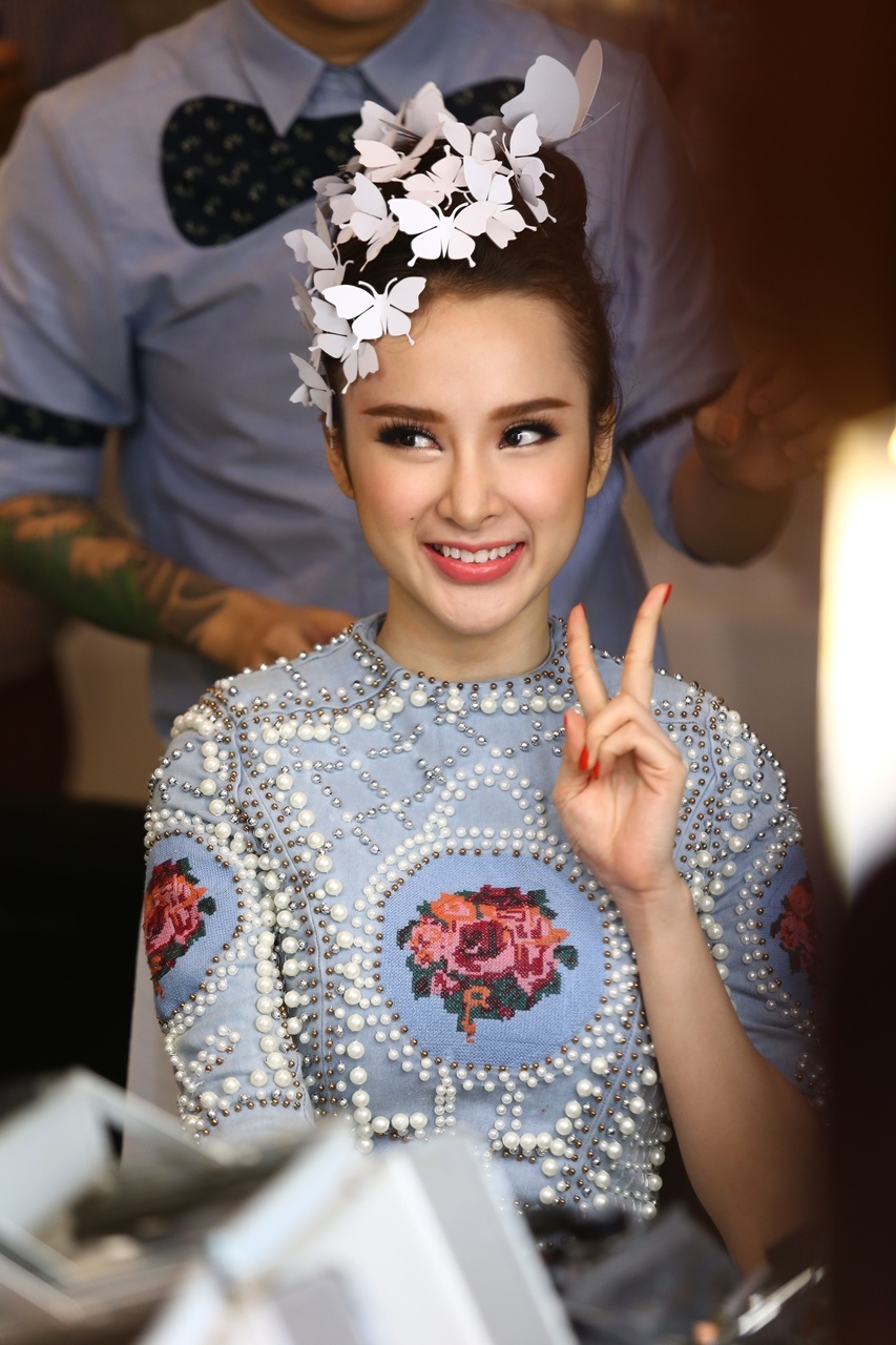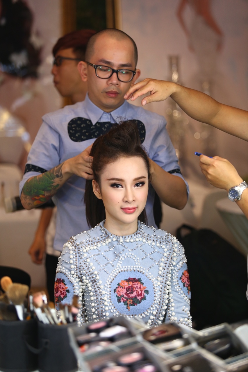 Sáng 19/4, tại TP.HCM, triễn lãm cưới Love Paradise 2014 trở màn với BST áo cưới xuân hè của Minh Lộc. Angela Phương Trinh được mời giữ vai trò vedette xuất hiện cuối show diễn. Trước đó, phía hậu trường, "nữ hoàng thị phi'' của showbiz Việt bận rộn với công tác trang điểm, chuẩn bị trang phục trước khi catwalk.