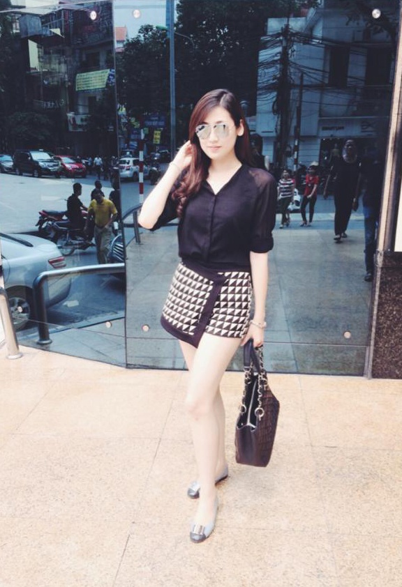| Không kém cạnh các mỹ nhân làng giải trí phía Nam, á hậu Dương Tú Anh xuống phố với hình ảnh thanh lịch, áo sơ-mi tối màu mix cùng chân váy xếp gấp họa tiết ô vuông cá tính. Người đẹp đi giày búp bê đơn giản. |