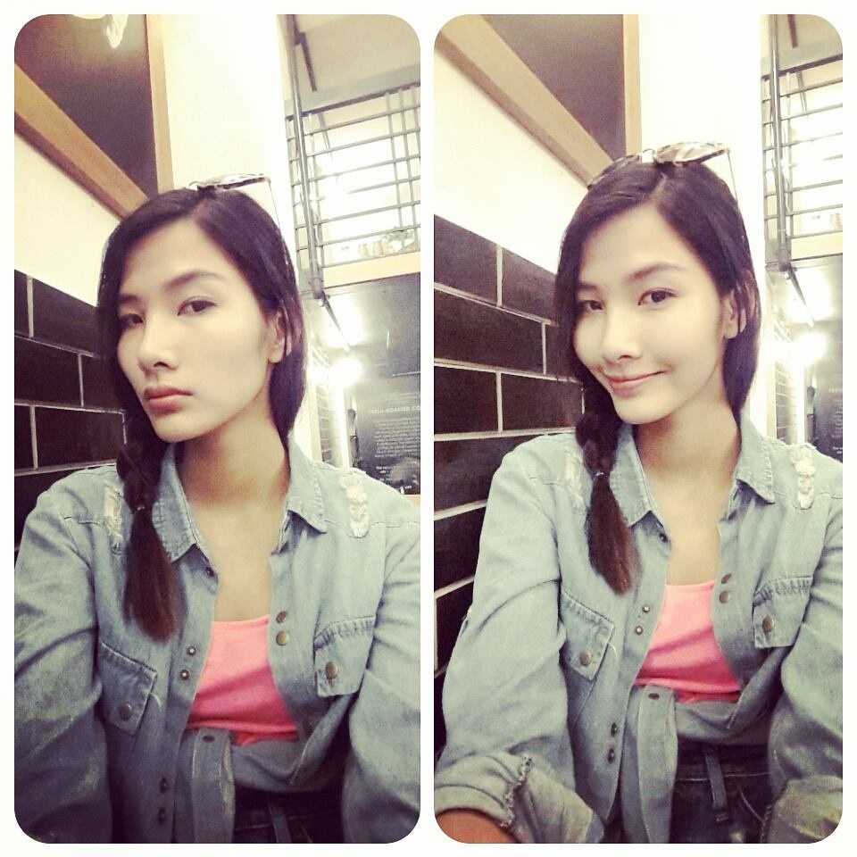 Hoàng Thùy khoe phong cách khỏe khoắn, hiện đại với áo denim mặc ngoài áo thun hồng.