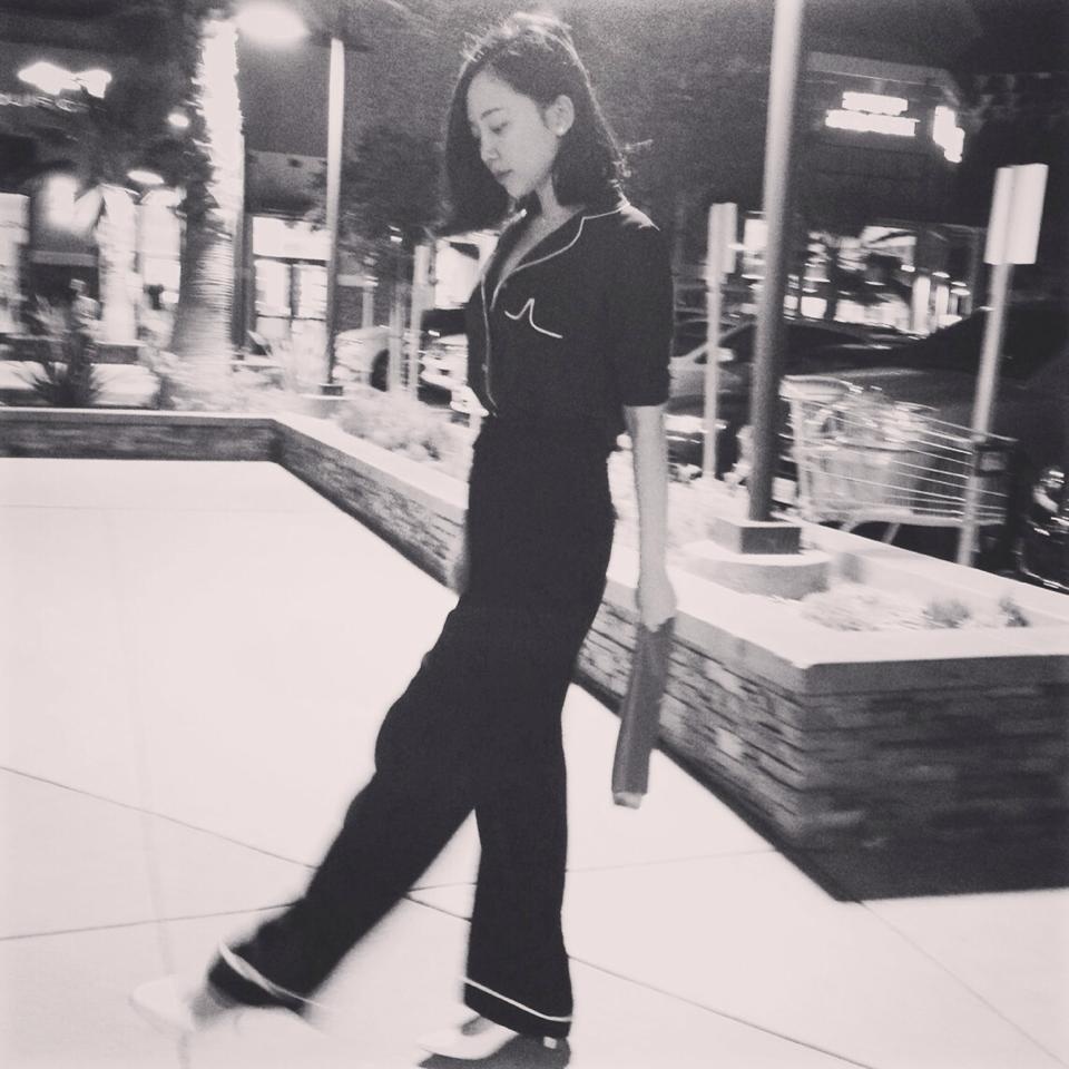 | Nữ ca sĩ hải ngoại tiếp tục biến hóa trang phục pyjama thành mốt dạo phố. |