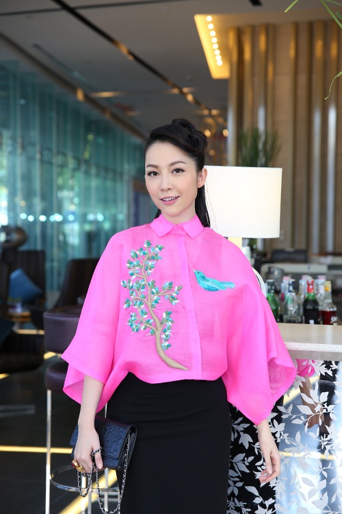 Chiều 3/4, Linh Nga bất ngờ xuất hiện trong buổi họp báo cuộc thi Giọng hát Việt nhí 2014 tại TP HCM. Lần này, ''Chim công làng múa'' tiếp tục chứng tỏ gu thời trang tinh tế khi diện trang phục áo dáng rộng tông hồng nổi bật kết hợp hài hòa cùng chân váy bút chì tối màu. Trang phục kín đáo, cổ điển được nhấn nhá bằng họa tiết cành cây và chú chim thêu tỉ mỉ.
