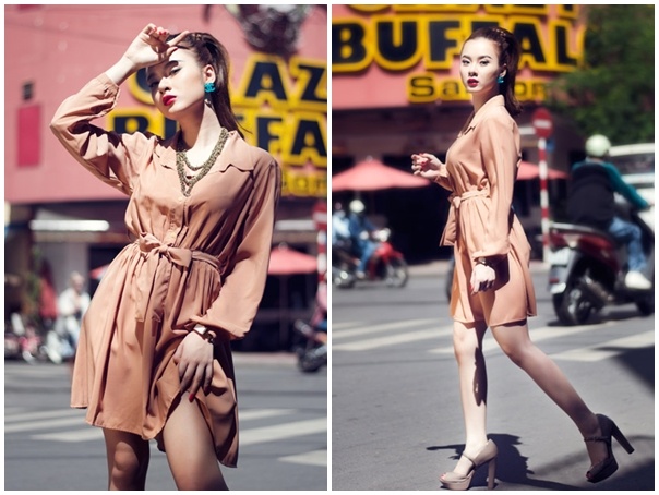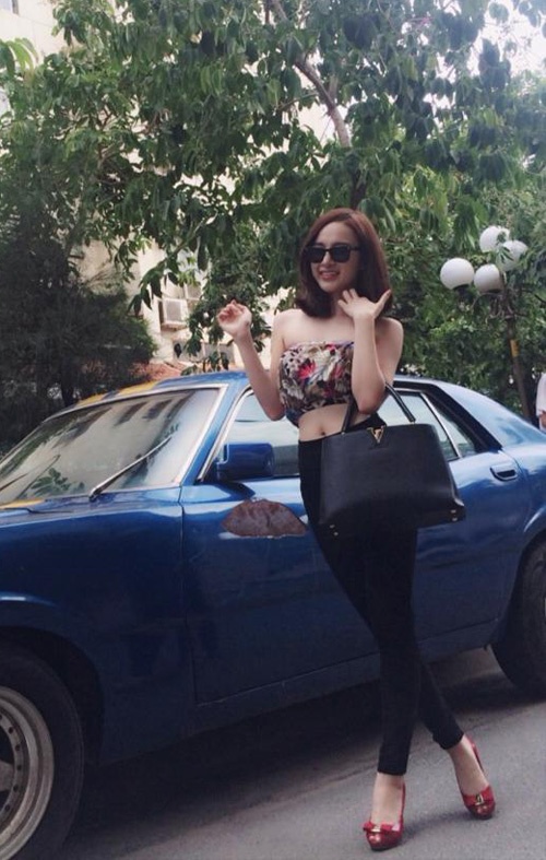 Người đẹp xuống phố với trang phục khoe eo hiện đại. Cô xuất hiện rất tự tin với hình ảnh quyến rũ.