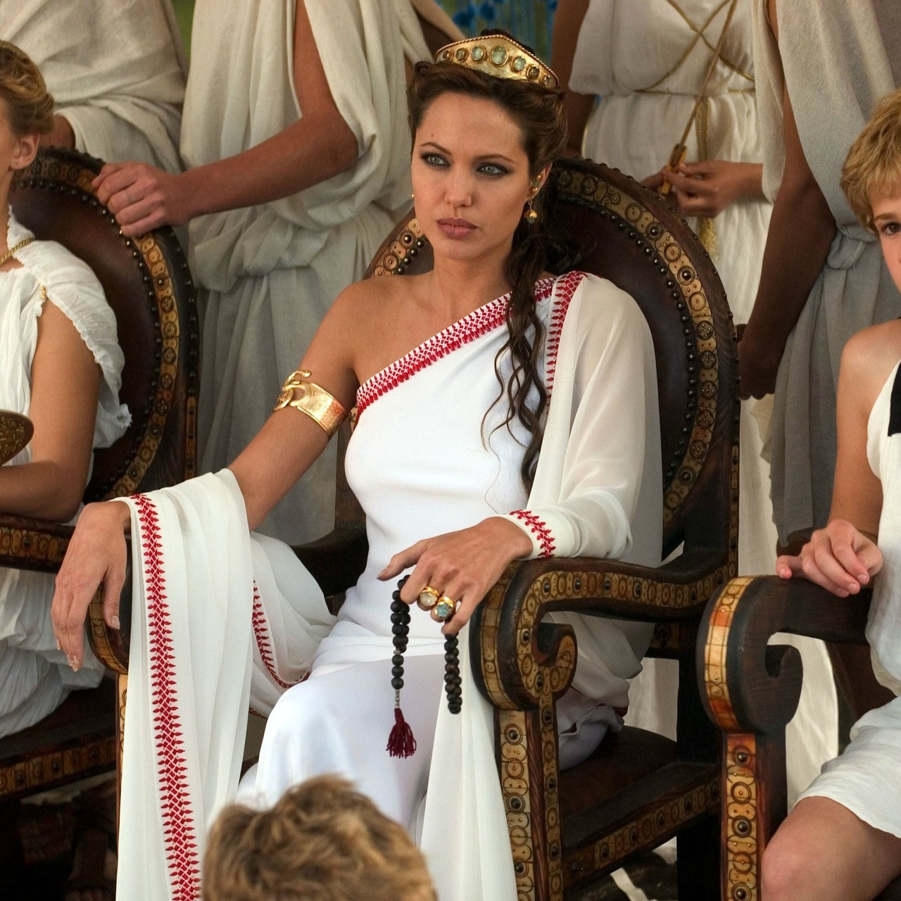 | Angelina Jolie từng thủ vai Hoàng hậu Olympias, mẹ của Alexander Đại đế trong bộ phim Alexander (2004). |