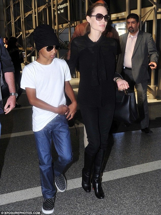 | Angelina và con trai nuôi người Campuchia Maddox. ẢNh: Daily Mail |