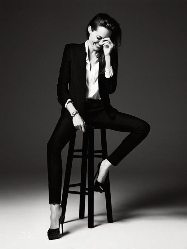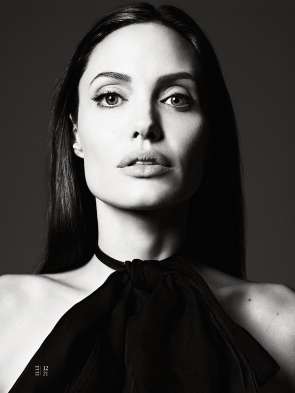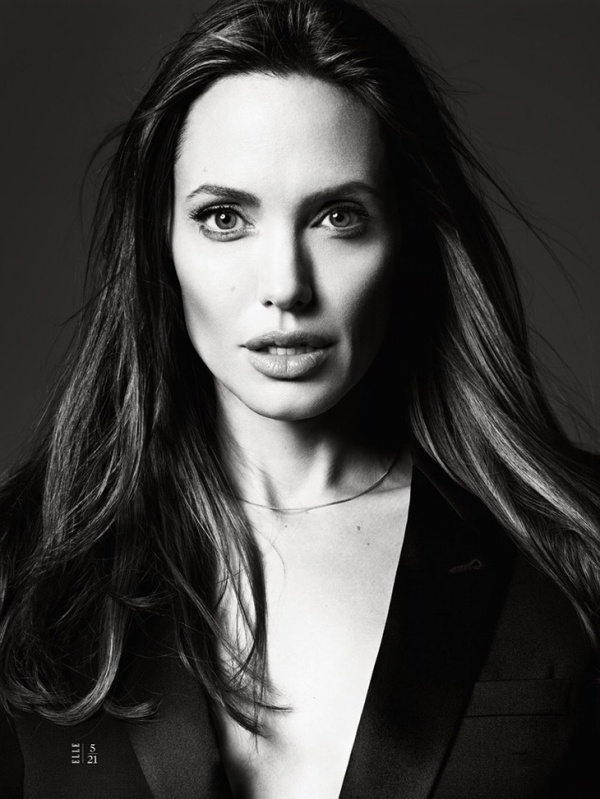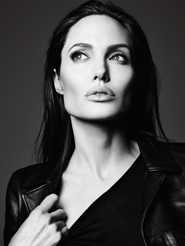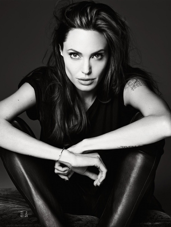 Khác với hình ảnh nóng bỏng, gợi cảm trong các bộ ảnh trước đây, lần này, Angelina Joile xuất hiện trên tạp chí Elle của Mỹ với những bộ trang phục với gam màu trắng đen khá đơn giản và kín đáo. Tuy vậy, với khuôn mặt góc cạnh vốn có, cùng đôi mắt to và đôi môi gợi cảm, cô dễ dàng mê hoặc được mọi ánh nhìn và trở nên quyến rũ lạ thường.