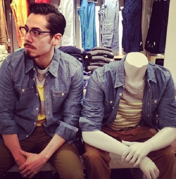 | Trong những lần đi mua sắm với vợ mình, ông Steve Venegas đã nghĩ ra ý tưởng khá hay ho, trong khi vợ mình thử quần áo ông Steve đã tranh thủ ghi lại những tấm ảnh sinh đôi của mình với ma-nơ-canh. |