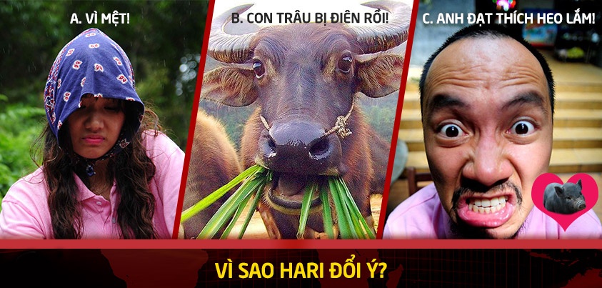 | Hari là cô nàng với những phát ngôn "bất hủ" ở Cuộc đua kỳ thú. Sau màn "bầu bún bò" ở ngay tập đầu tiên, cô còn khiến khán giả nghiêng ngả với kết luận: cục than + lá khô = thắng cố. |